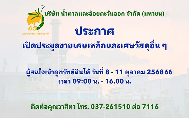 ประกาศ เปิดประมูลขายเศษเหล็กและเศษวัสดุอื่นๆ